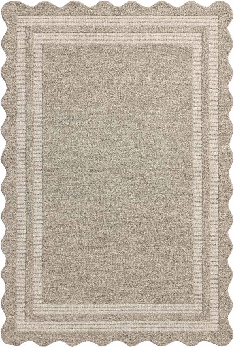 The Scottie Collection from Chris Loves Julia x Loloi is a hand-tufted wool area rug with a playful scalloped edge and lower-pile, striped border for a touch of structure. The rug’s overall pile is thick and plush, available in easygoing earth tones and neutral colorways. This collection is hand-tufted of 100% wool in India and GoodWeave-certified, ensuring our commitment to ethical production and the support of weavers’ communities. Some shedding is expected and a natural characteristic of wool rugs; we recommend vacuuming frequently without a beater bar.