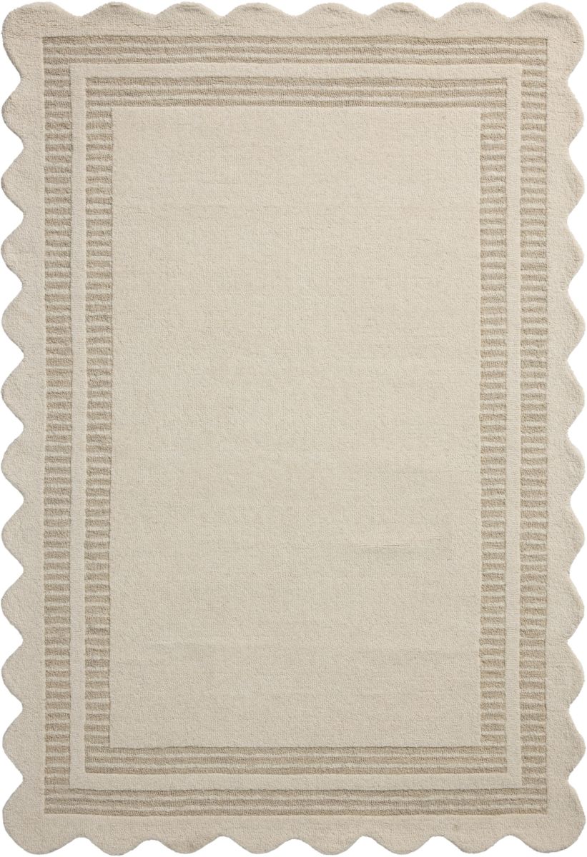 The Scottie Collection from Chris Loves Julia x Loloi is a hand-tufted wool area rug with a playful scalloped edge and lower-pile, striped border for a touch of structure. The rug’s overall pile is thick and plush, available in easygoing earth tones and neutral colorways. This collection is hand-tufted of 100% wool in India and GoodWeave-certified, ensuring our commitment to ethical production and the support of weavers’ communities. Some shedding is expected and a natural characteristic of wool rugs; we recommend vacuuming frequently without a beater bar.