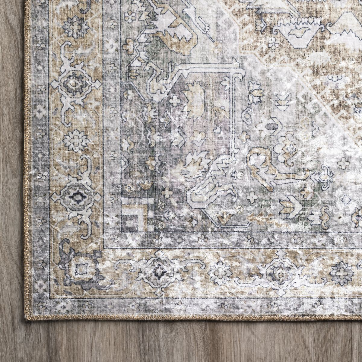 Vacuum rugs regularly. Set the vacuum height gauge to its highest setting, as some powerful vacuums may damage the pile, bound edges or corners of your rug. Do not pull loose yarns; trim with scissors. Frequent vacuuming will aid in eliminating excess loose fibers. The shedding will diminish with regular wear and vacuuming. Blot spills immediately. Spot clean with mild soap and water.