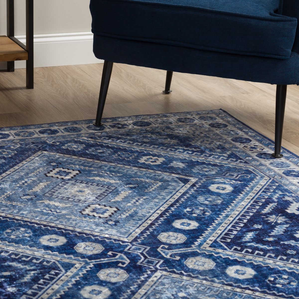Vacuum rugs regularly. Set the vacuum height gauge to its highest setting, as some powerful vacuums may damage the pile, bound edges or corners of your rug. Do not pull loose yarns; trim with scissors. Frequent vacuuming will aid in eliminating excess loose fibers. The shedding will diminish with regular wear and vacuuming. Blot spills immediately. Spot clean with mild soap and water.