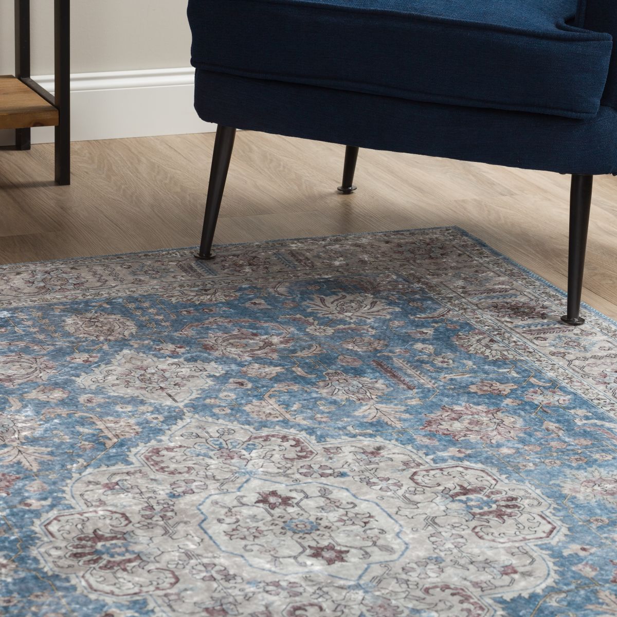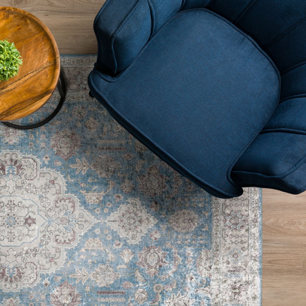 Vacuum rugs regularly. Set the vacuum height gauge to its highest setting, as some powerful vacuums may damage the pile, bound edges or corners of your rug. Do not pull loose yarns; trim with scissors. Frequent vacuuming will aid in eliminating excess loose fibers. The shedding will diminish with regular wear and vacuuming. Blot spills immediately. Spot clean with mild soap and water.