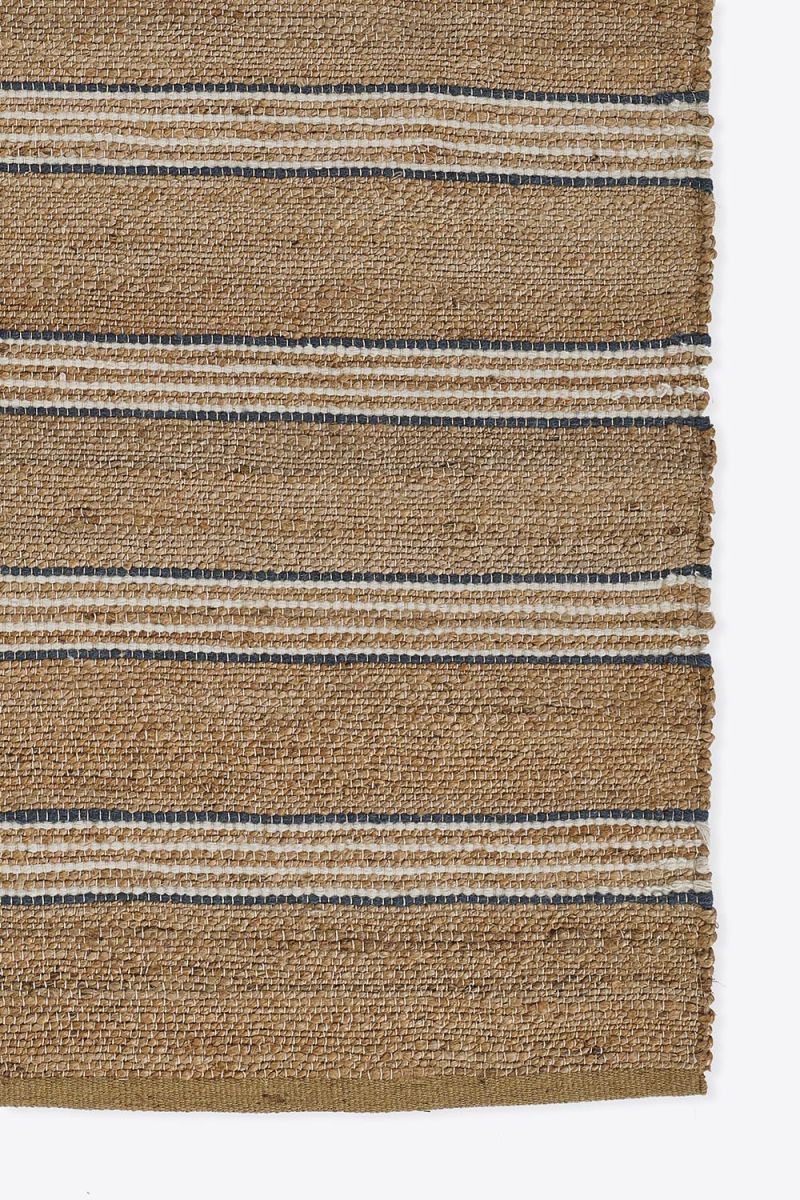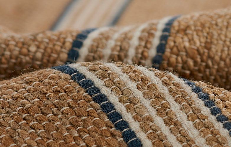 A different take on a simple stripe style, this tightly handwoven natural jute and wool rug is the modern marvel your interior needs. The classic blue color naturally contrasts with the jute fibers, while the brown colorway adds a little something extra. This rug provides a beautiful foundation for your space, with its elevated take on a classic, at an affordable price.