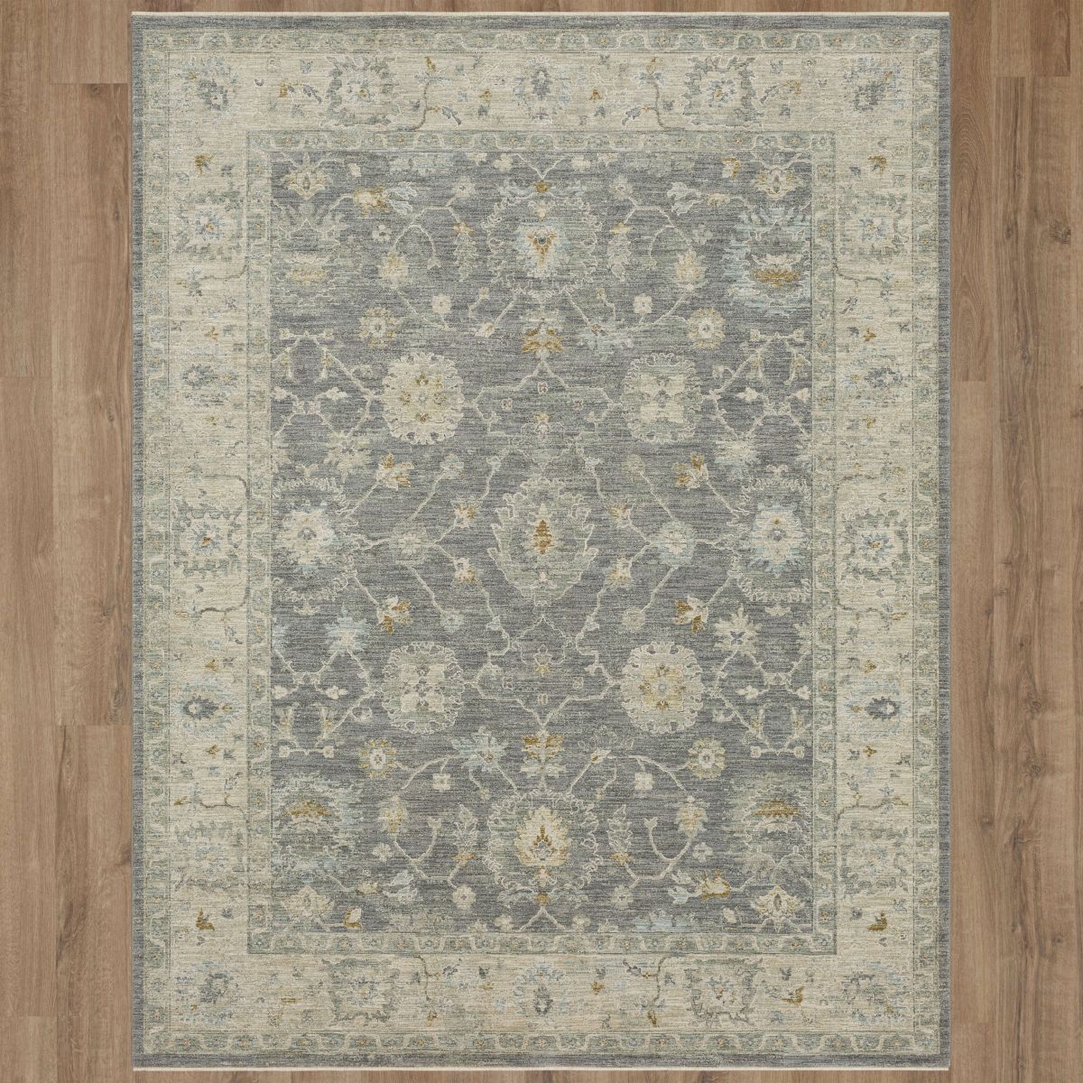 Soft hues of grey, blue and beige illuminate the traditional motif of Karastan’s Kahta Area Rug. Machine woven with premium polyester yarn; this area rug collection features plush pile with subtle fringe accents that makes a luxurious statement in any space. The resilient polyester offers sumptuous softness and rich colors with dependable durability designed to thrive in high traffic areas. Available in popular sizes such as 5x8 and 8x10, this area rug collection is a great choice for adding style to a variety of spaces in your home.