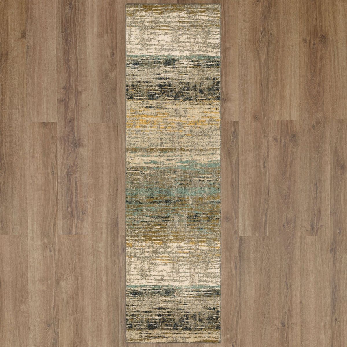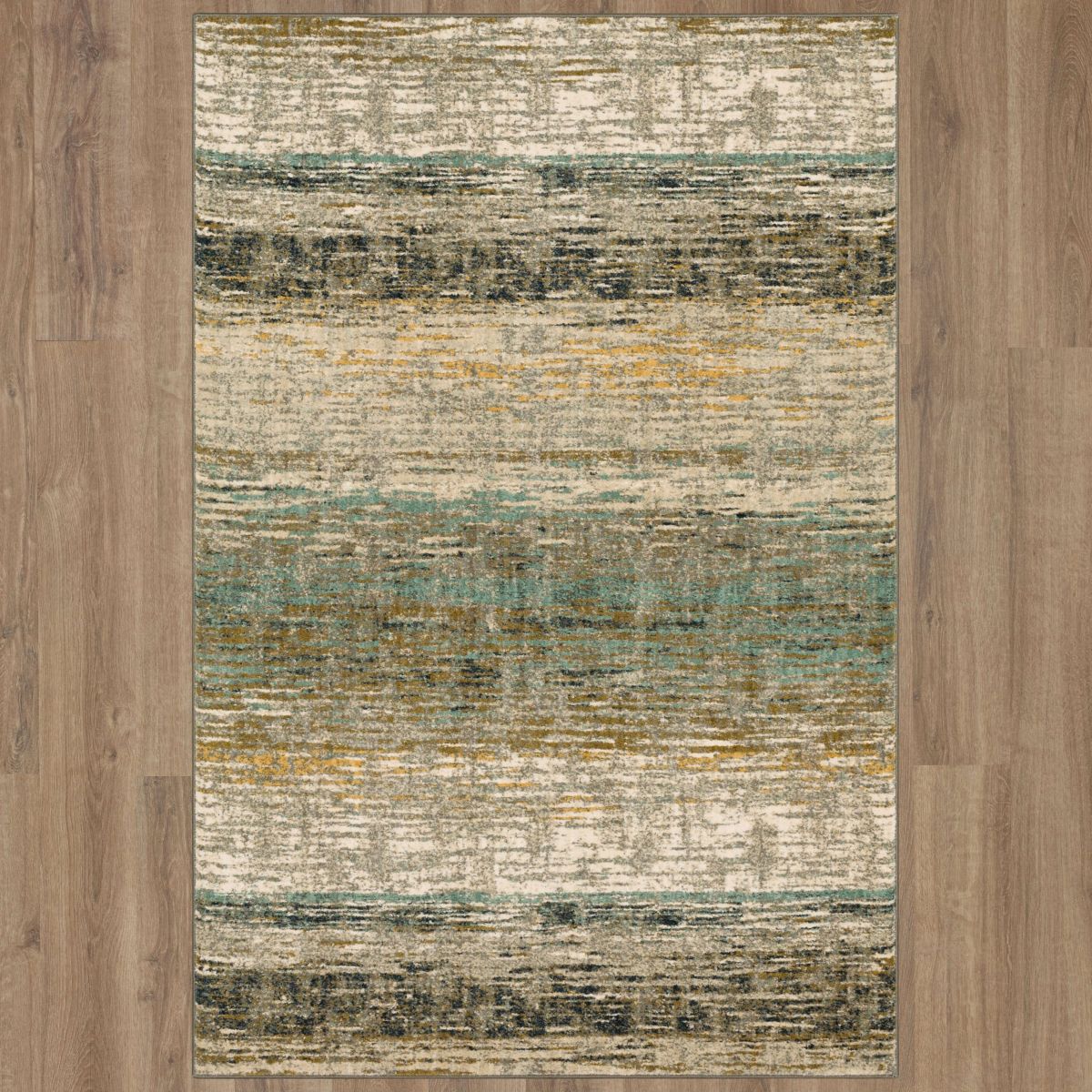 Distressed painterly washes of gold, ivory, charcoal, aquamarine, grey and silver create abstract art inspired style in the modern design of the Diffuse Area Rug in Bronze from Scott Living. Divine dustings of shimmering cream and gold viscose illuminate the polished patterns and detailed texture of Scott Living's Artisan Collection. Fused with the luxurious finish of Karastan Rugs' exclusive SmartStrand® yarn, the styles of the Artisan Collection feature a sumptuous softness and a built-in premium stain and soil resistance that will never wear or wash off.