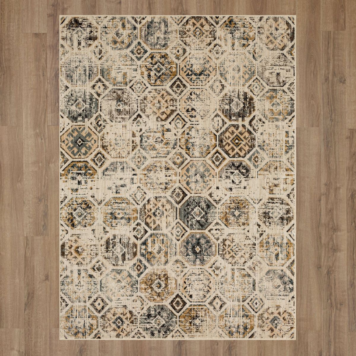 A distressed, globally inspired tile design offers contemporary cultural flair for your floor with Karastan Rugs' Tunis Area Rug. Exotic Moroccan tile inspired artistry is modernized in a versatile neutral color palette. Woven with Karastan Rugs' exclusive ecofriendly EverStrand™, a premium polyester yarn created from post-consumer recycled plastic water bottles, the designs of the Elements Collection are as easy on the eyes as the environment around us. Renowned for its irresistible softness, this silky yarn also offers superior strength stain resistance, dependable durability and an illustrious color clarity. Refreshing and radiant, colors come alive through the subtle light catching sheen inherent to this luxurious yarn.