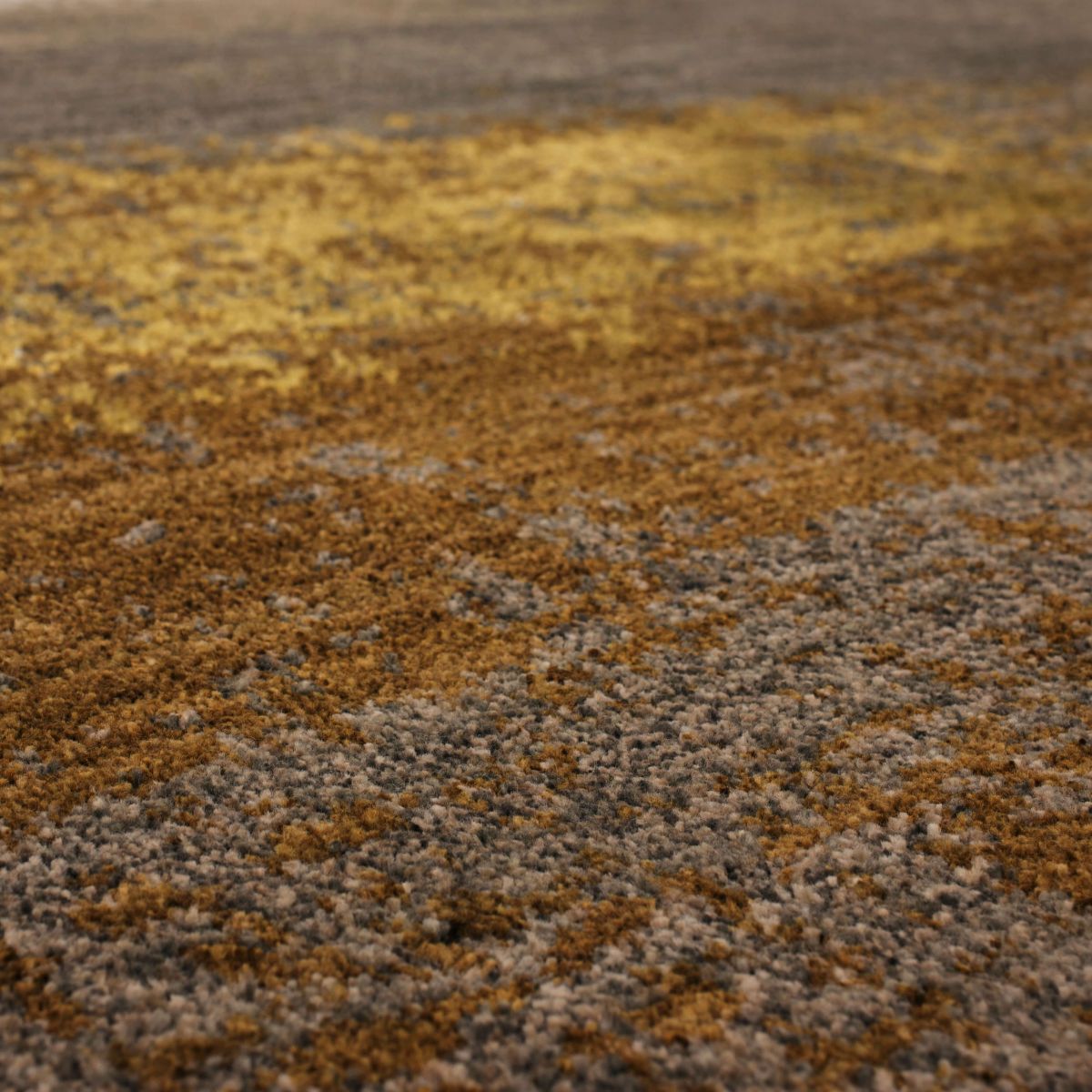 Washes of smoky grey, mushroom, desert and brushed gold cover the canvas of the Aura area rug by Karastan like a work of abstract art. Subtly shimmering sprinkles of viscose add a glimpse of glamour to the velvety texture of Karastan Rugs' exclusive SmartStrand® yarn. Sumptuously soft, the luxurious styles of the Enigma Collection feature the touch of silk paired with a premium, built-in lifetime stain and soil resistance that will never wear or wash off.