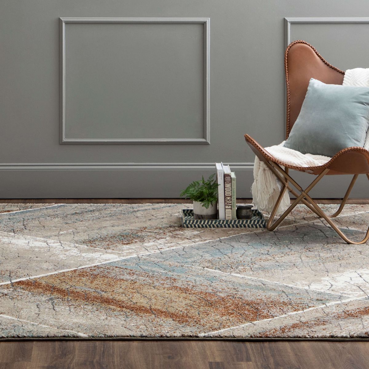 Modern geometric diamonds are highlighted by a distressed color palette of cool greys in Karastan’s Eloi Area Rug in Dim Grey. Woven using SmartStrand® yarn, Karastan’s Epiphany collection is designed with built-in lifetime stain and soil resistance to ensure timelessly elegant styles. Ideal for entryways, living rooms, kitchens, bedrooms, dining areas, offices and more, this designer style is also available in runners, scatters, 5’ x 8’ area rugs, large 9’ x 12’ area rugs and other popular sizes. Keep your new rug and the flooring beneath looking their best with an essential all-surface, earth conscious rug pad, crafted of 100% recycled fibers and certified Green Label Plus by The Carpet & Rug Institute!