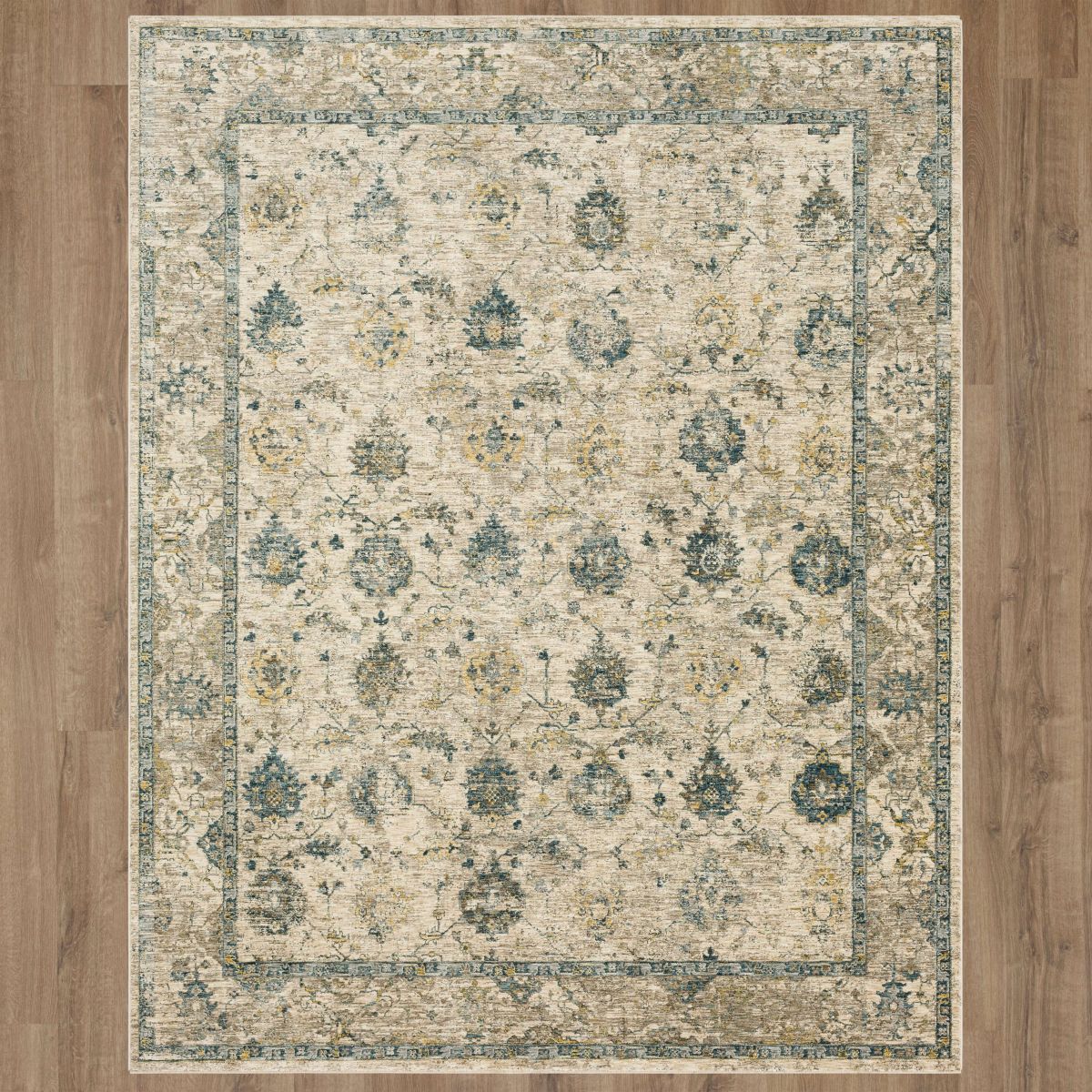 Soft shades of blue complement the predominantly neutral style of Karastan’s Darica Area Rug in Cream. Traditionally inspired palmettes offer an antique aesthetic with this rug’s distressed finish. Ideal for elegant entryways, luxurious living rooms, beautiful bedrooms, opulent offices and more, the designs of the Marash Collection are thoughtfully woven with soft and stain-resistant synthetic yarn. Imported from Turkey, each debut of this collection exudes international flair with a vintage fringed trim along the edges. Available in a spectrum of sizes, this area rug is beautiful as a set or solo.