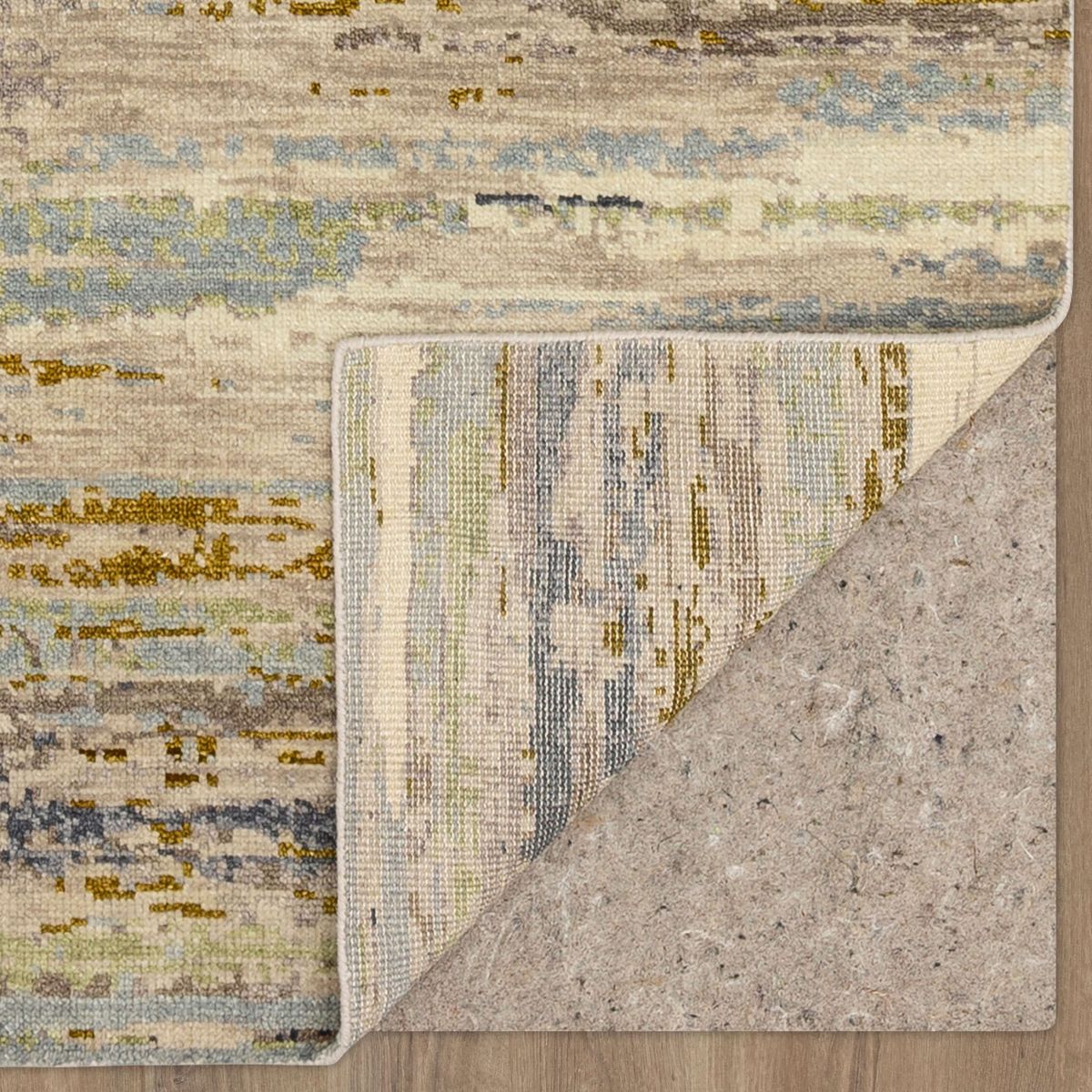 Powdery soft hues of light blue and creamy ivory perfectly paint the abstract striped inspired artistry of Karastan’s Piedras Area Rug. Hand-knotted by skilled artisans with premium natural wool yarn, this debut of Karastan’s Paradigm Collection showcases the legendary Persian influenced artistry Karastan is known for. Renowned for its strength, stain-resistance and softness, this rug’s wool yarn offers the upmost in luxury and quality. Ideal for entryways, living rooms, kitchens, bedrooms, dining areas, offices and more, this style is also available in runners, 5’ x 8’ area rugs, large 8’ x 10’ area rugs and other popular sizes. Keep your new rug and the flooring beneath looking their best with an essential all-surface, earth conscious rug pad, crafted of 100% recycled fibers and certified Green Label Plus by The Carpet & Rug Institute!
