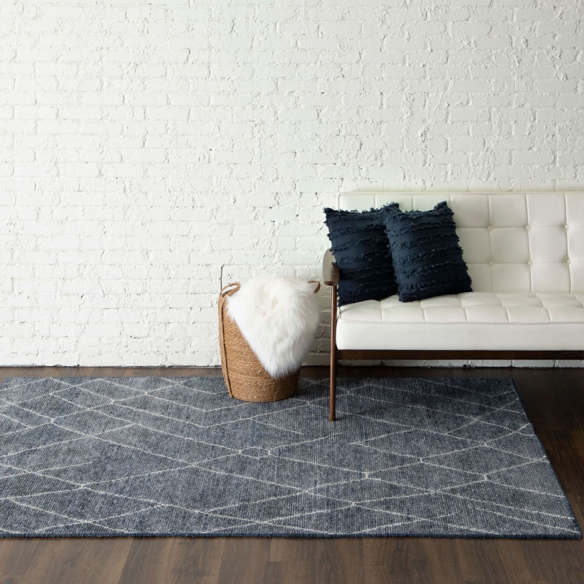 A modern maze of abstract lines connects in the contemporary minimalist inspired design of Karastan’s Spartel Area Rug in Blue Steel. Hand loomed by skilled artisans, this are rug features a chic contrast between the strength of natural wool and delicate shimmer of luxurious viscose. Supremely soft, stain-resistant and stylish, have it all with this debut of Karastan’s Tangier Collection. Ideal for entryways, living rooms, kitchens, bedrooms, dining areas, offices and more, this style is also available in runners, 5’ x 8’ area rugs, large 8’ x 10’ area rugs and other popular sizes. Keep your new rug and the flooring beneath looking their best with an essential all-surface, earth conscious rug pad, crafted of 100% recycled fibers and certified Green Label Plus by The Carpet & Rug Institute!