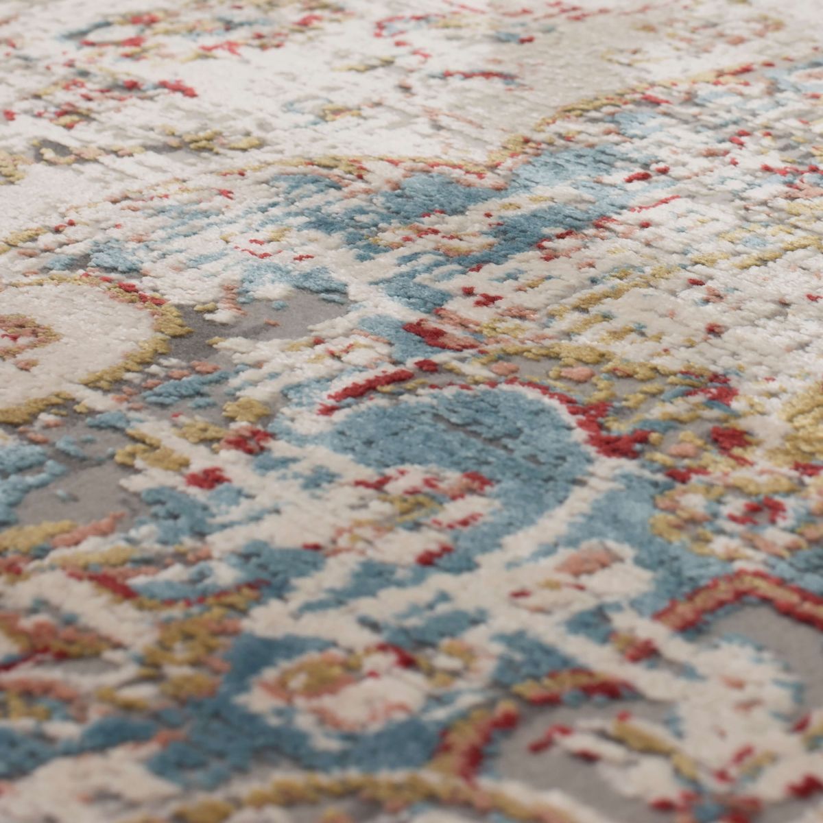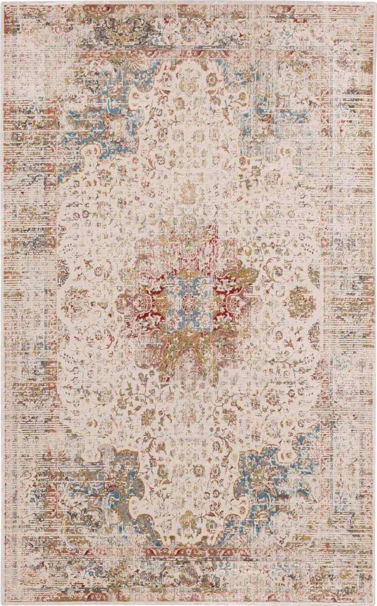 Opulent details surround a stately central medallion in the luxurious globally inspired style of Karastan Rugs' Dorset Area Rug in Multicolor. This timeless and transitional style is distressed for an updated feel and features a fresh palette of rust red, blue, grey, tobacco brown and beige. A modern marriage of textures, the subtle shimmer of viscose is woven alongside soft and stain resistant premium polyester in the debuts of Karastan Rugs' new Tryst Collection.