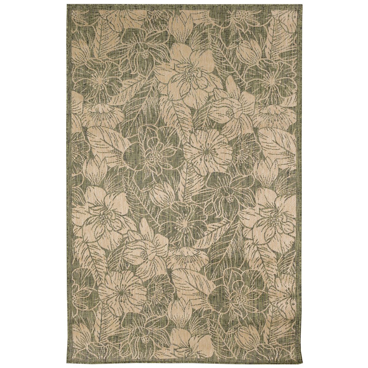 The Botanical nature inspired flatweave performance area rug features a decorative botanical pattern of etched florals with inverse colors in sand with a green background. A sophisticated take on a tropical garden, this floral design is perfect for welcoming guests in your entryway, living room or as a stylish decorative colorful detail on your outdoor patio. Made in Turkey from 87% Polypropylene/13% Polyester, the Performance Carmel Collection is Power Loomed to create subtle, naturally beautiful multi-toned detailed designs with a high-quality finish. The material is flatwoven, fade resistant, durable, UV stabilized and ideal for those high traffic areas such as your patio, deck, kitchen and living room making this the perfect indoor or outdoor rug. A fresh take on traditional area rugs, patterns range from tropical, coastal, ocean, nature, transitional, contemporary, novelty, sea life, animals and classic to seamlessly tie together the design of your home. Limiting exposure to rain, moisture and direct sun will prolong rug life.