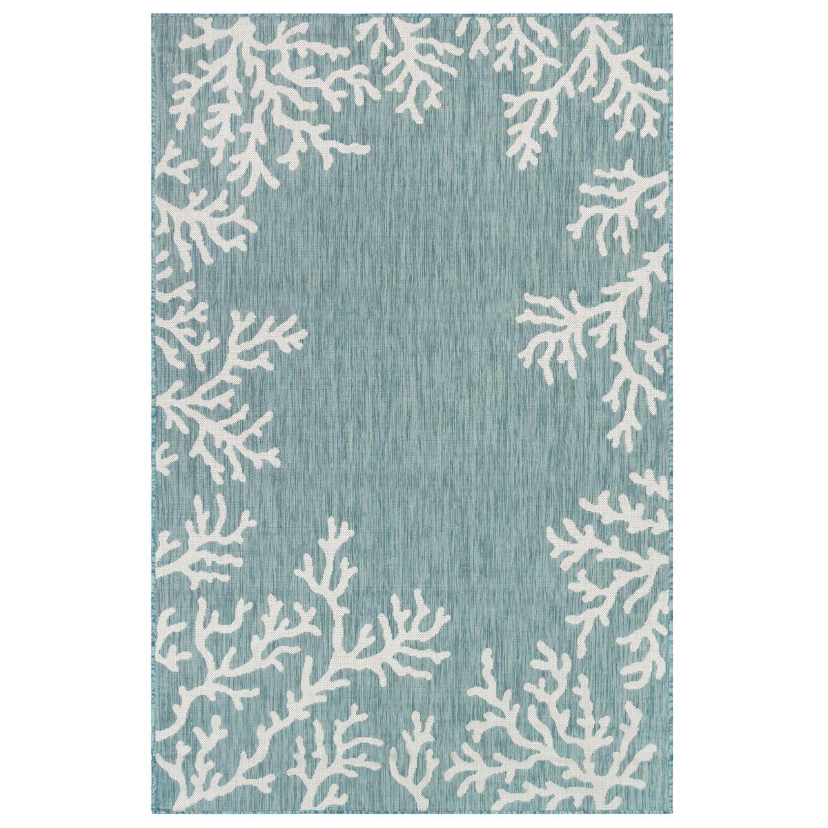 The Coral Border decorative colorful flatweave area rug with a dynamic coral border brings a splash of tropical beach style to your home. White coral with a stylishly contrasting aqua blue background make this a subtle but striking sea life rug, perfect for welcoming guests in your entryway, living room or as a playful detail on your outdoor patio. Made in Turkey from 87% Polypropylene/13% Polyester, the Performance Carmel Collection is Power Loomed to create subtle, naturally beautiful multi-toned detailed designs with a high-quality finish. The material is flatwoven, fade resistant, durable, UV stabilized and ideal for those high traffic areas such as your patio, deck, kitchen and living room making this the perfect indoor or outdoor rug. A fresh take on traditional area rugs, patterns range from tropical, coastal, ocean, nature, transitional, contemporary, novelty, sea life, animals and classic to seamlessly tie together the design of your home. Limiting exposure to rain, moisture and direct sun will prolong rug life.