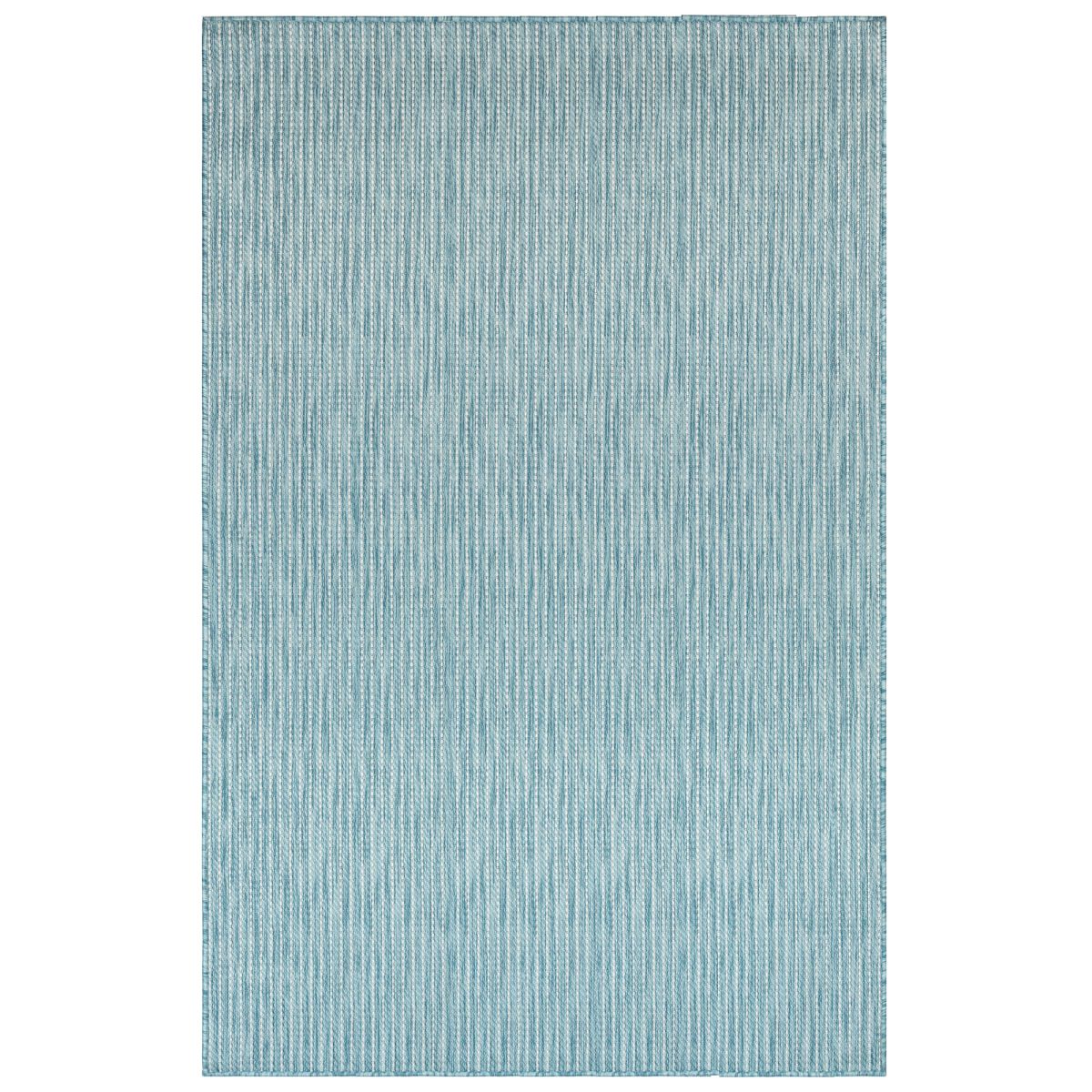 The Textured Stripe colorful traditional flatweave area rug features stripes that appear to be solid texture part of the weave. A soothing aqua blue background is gently broken up by subtle lines stretching from end to end along the rug. This striking decorative area rug is perfect for welcoming guests in your entryway, living room or as a stylish detail on your outdoor patio or deck.