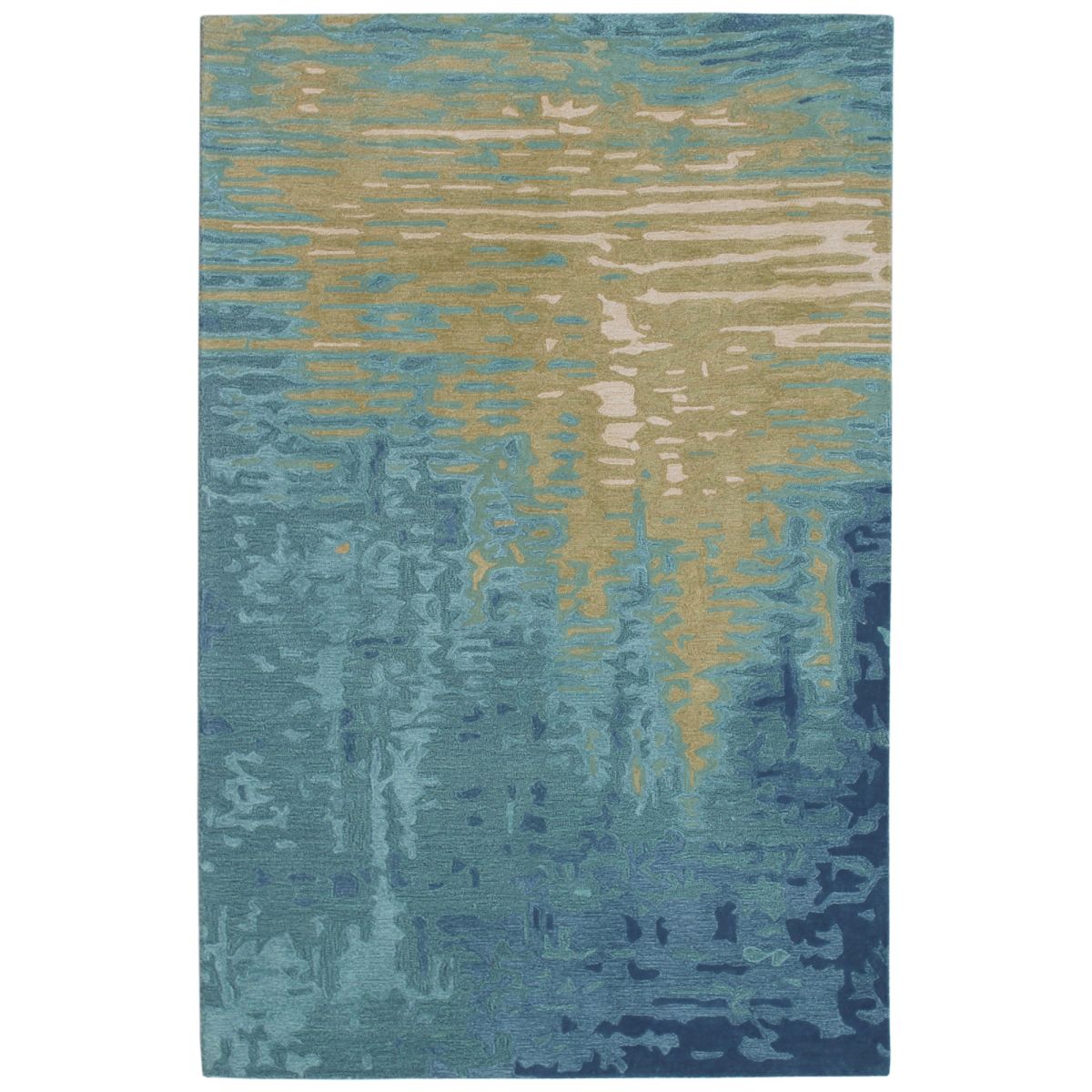 The unique color combination and shading add dimension to this abstract design making it a striking statement piece, in blue.