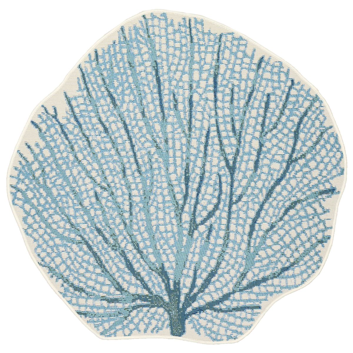 The Coral Fan decorative transitional coastal novelty mat features an ivory background that highlights the whimsical delicate aqua fanned coral branch shaped mat. Made in Egypt from 75% polypropylene/25% polyester, reinforced with a latex non-skid backing, the performance Esencia Collection is Power Loomed to create intricate designs with a broad color spectrum and a high-quality finish. The material is flatwoven, low profile, durable, weather resistant, UV stabilized for enhanced fade resistance, durable and ideal for those high traffic areas such as your patio, deck, sunroom, kitchen, bathroom, entryway, hallway, living room and bedroom making this the ideal indoor or outdoor rug. Detailed patterns are offered in an eclectic mix of styles ranging from tropical, coastal, geometric, novelty, contemporary and traditional designs; making these perfect accent rugs for your home. Limiting exposure to rain, moisture and direct sun will prolong mat life.