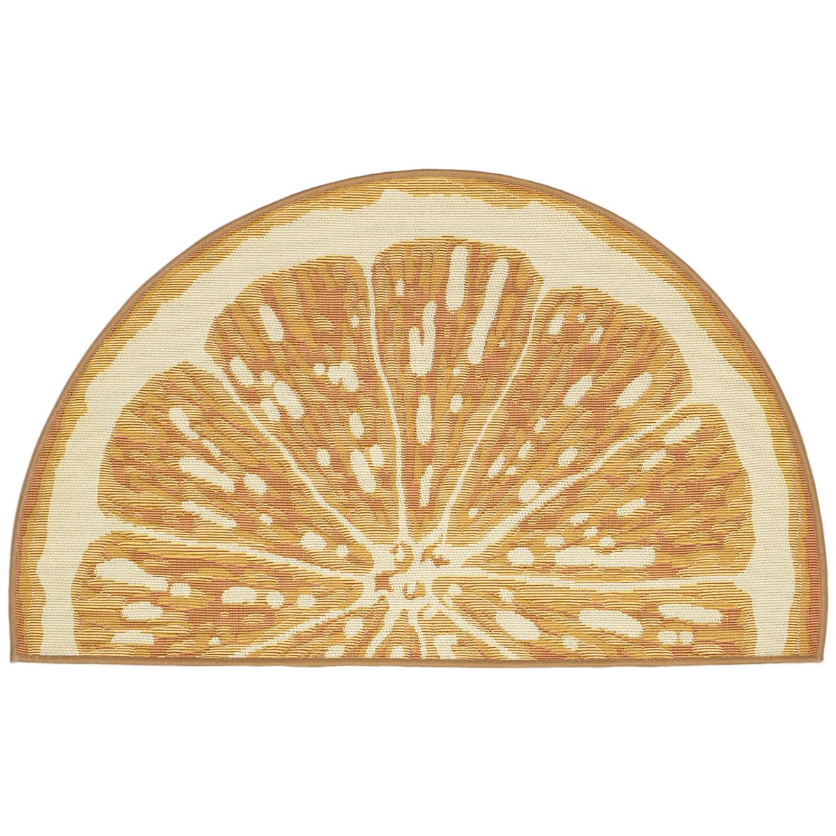 The Lemon decorative transitional whimsical novelty mat features a shaped bright yellow lemon slice with ivory accents. Made in Egypt from 75% polypropylene/25% polyester, reinforced with a latex non-skid backing, the performance Esencia Collection is Power Loomed to create intricate designs with a broad color spectrum and a high-quality finish. The material is flatwoven, low profile, durable, weather resistant, UV stabilized for enhanced fade resistance, durable and ideal for those high traffic areas such as your patio, deck, sunroom, kitchen, bathroom, entryway, hallway, living room and bedroom making this the ideal indoor or outdoor rug. Detailed patterns are offered in an eclectic mix of styles ranging from tropical, coastal, geometric, novelty, contemporary and traditional designs; making these perfect accent rugs for your home. Limiting exposure to rain, moisture and direct sun will prolong mat life.