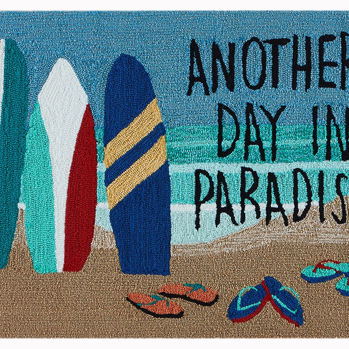 Bring paradise home with this fun and carefree beachy mat, in blue.