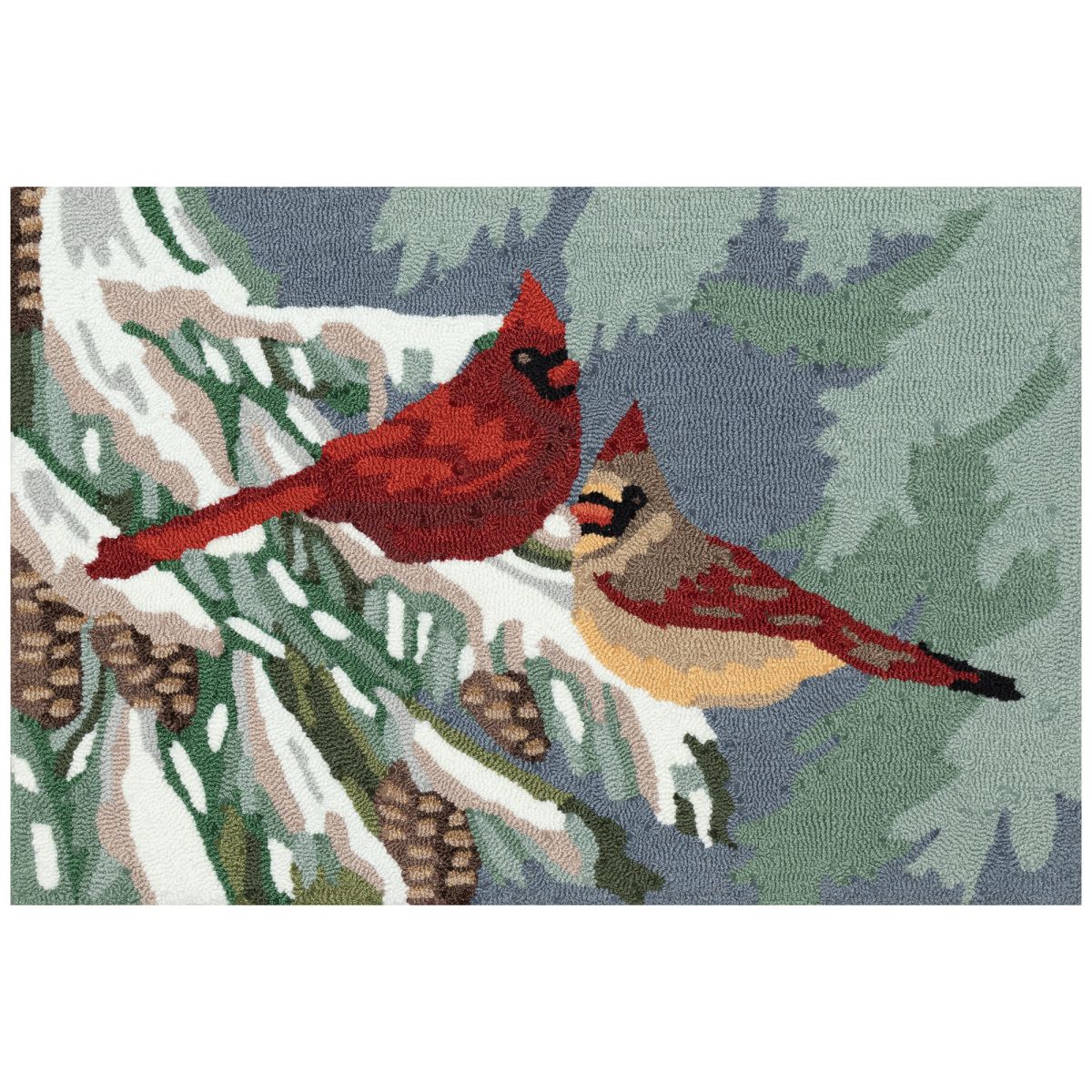 The Cardinal Christmas Day winter mat features an artists rendition of two multicolored cardinal birds on a pinecone ladened pine branch capped with snow. This happy scene makes this mat the perfect accent to welcome guests at your door, at your kitchen sink, or in any space inside or outside your home.
