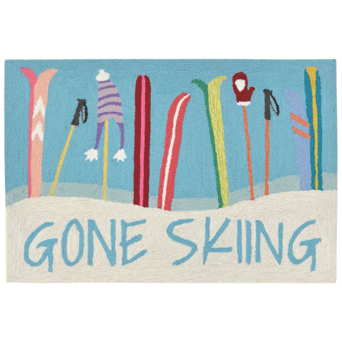 The "Gone Skiing" decorative winter mat serves as both a welcome and state of mind. Skis and poles in bright colors such has light blue, pink, red and yellow wait in the snow for their next run down the mountain. This happy scene makes this mat the perfect accent to welcome guests at your door, at your kitchen sink, or in any space inside or outside your home.