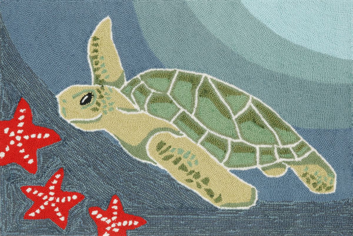 This decorative, coastal, contemporary, ocean, Sea Turtle inspired mat with richly blended colors and playful novelty design will delight beach lovers everywhere, in blue.