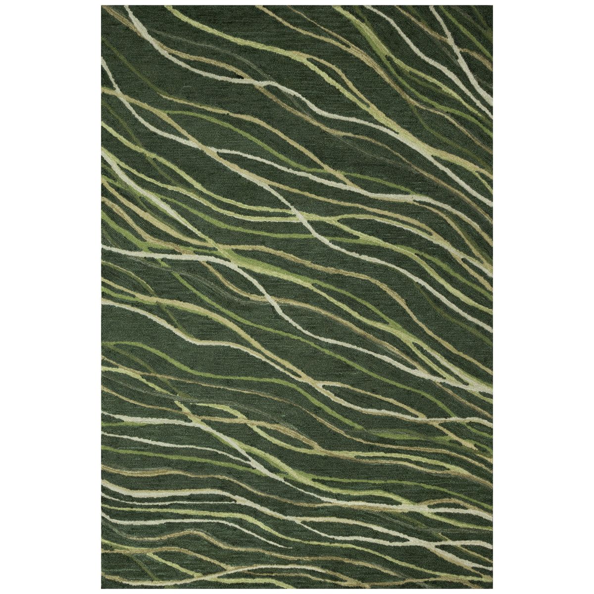 The Ribbons decorative area rug features a contemporary, painterly interpretation of wave-like stripes in shades of green and ivory on a rich green background. The distinctive high-low construction enhances the modern design and adds additional texture to your space.