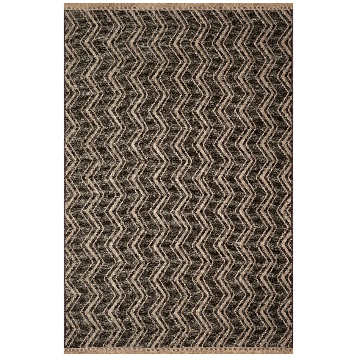 The transitional geometric Zigzag area rug features a contemporary natural jute zigzag pattern on a velvety soft striated combination of brown and green background with an edge fringe accent. The dynamic design combined with the soft chenille and jute accents are the perfect combination of modern to bohemian style for your indoor decor.