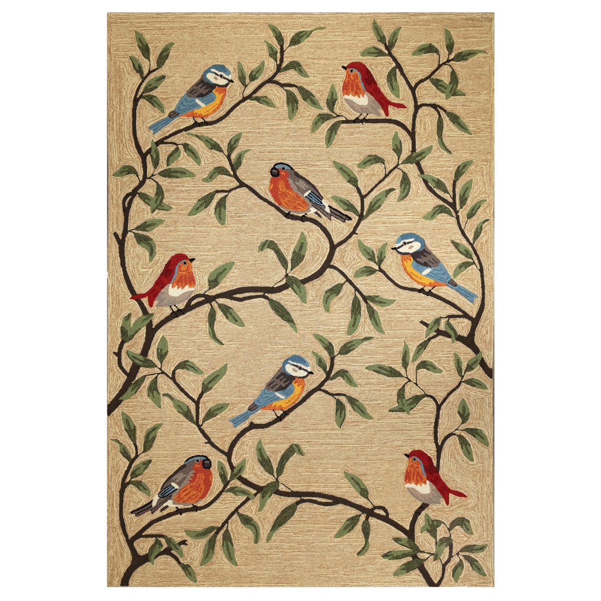 The Birds on Branches transitional decorative garden area rug features a picturesque scene of colorful song birds perched on delicate tree branches with green leaves on a natural background. This botanical inspired design will effortlessly compliment any indoor or outdoor space.