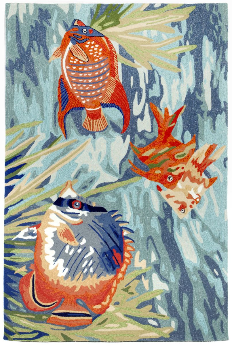 The Tropical Fish transitional decorative ocean inspired area rug transports you underwater to a snapshot of tropical fish in their natural habitat. Bright nautical sea life and warm ocean water brings this contemporary scene to life and will make a colorful impact on any indoor or outdoor space.
