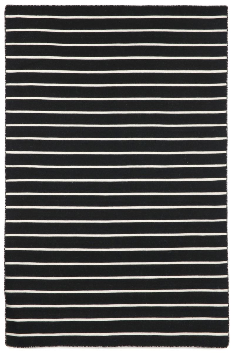This simple yet fashionable pattern lends itself well to the hand woven construction, while sophistication is achieved through the vibrant blended colors, in black. This handmade, reversible flatweave is crafted of weather-resistant synthetic fiber. The low profile nature offers a casual look with versatility to use nearly anywhere inside or outside the home. This item is treated for fade resistance to ensure long-lasting beauty. Limiting exposure to rain, moisture and direct sun will prolong rug life.