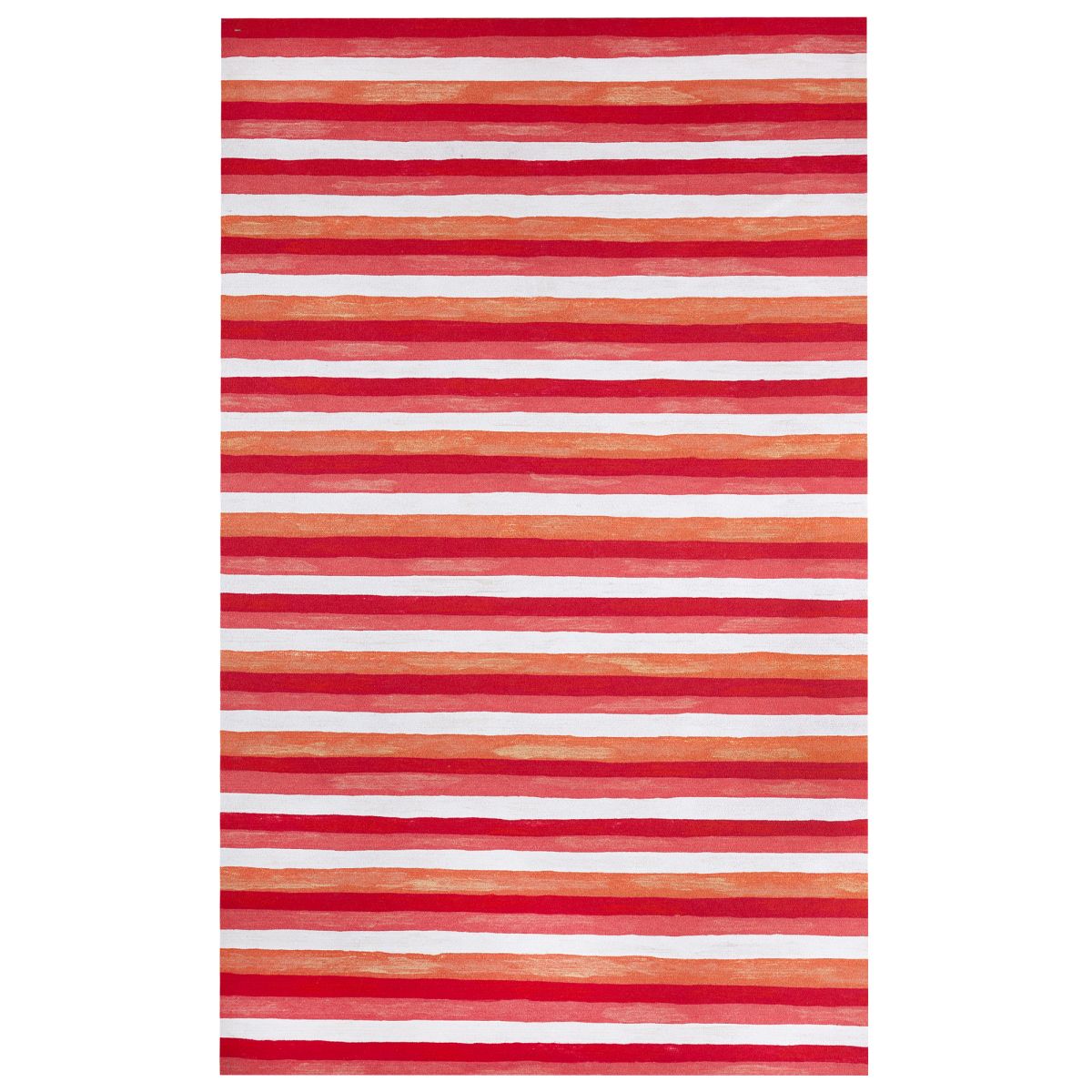 The Painted Stripes area rug features orange, red, pink and ivory wavy stripes creating a watercolor effect.