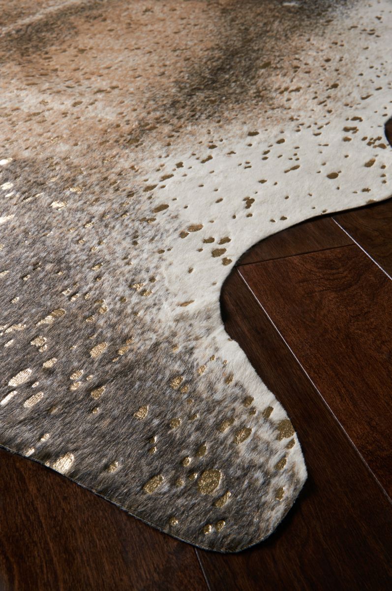 A compelling variant of the timeless cowhide rug, the Bryce Collection touts rich metallic accents set against versatile neutral tones. Power-loomed of acrylic and modacrylic pile, Bryce offers long-wearing durability for your busiest living room, dining area, or entry way.