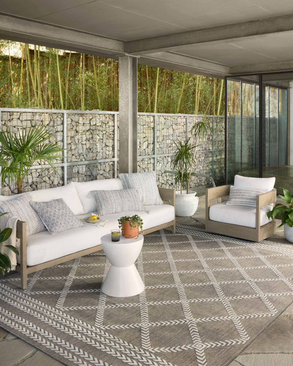 Power-loomed of 100% polypropylene pile in Egypt, the Rainier Collection features neutral hues and contemporary patterns. Rainier is an indoor/outdoor collection, specially treated to withstand rain, sunshine, and other outdoor elements.