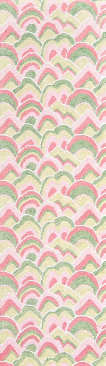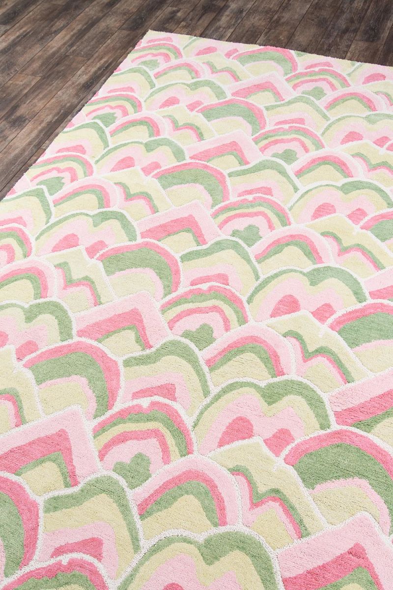 An all-over pattern with organic influences, this transitional area rug mixes decorative opulence with abstract elements. The overlapping irregular scallop shapes are hand tufted from soft cotton fibers in alternating shades of pink and green and watercolor gestures inspired by the natural world. A standout style within the Madcap Cottage by Momeni collection, the colorful floorcovering is a classically designed accent rug infused with contemporary perspective. Bring the adventure home.