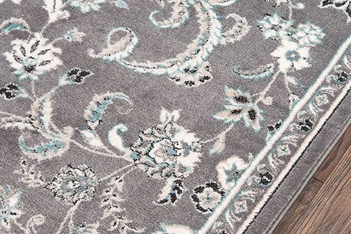 Ornamental damasks, floral trellises, palmettes and medallions define the design of this traditional area rug. Soft shades of grey, blue and ivory are impeccably suited for every living space, providing a neutral complement for the classical rug patterns that feel utterly timeless underfoot. Each rug is as soft as it is durable, with a combination of strong synthetic yarns and power loomed construction.