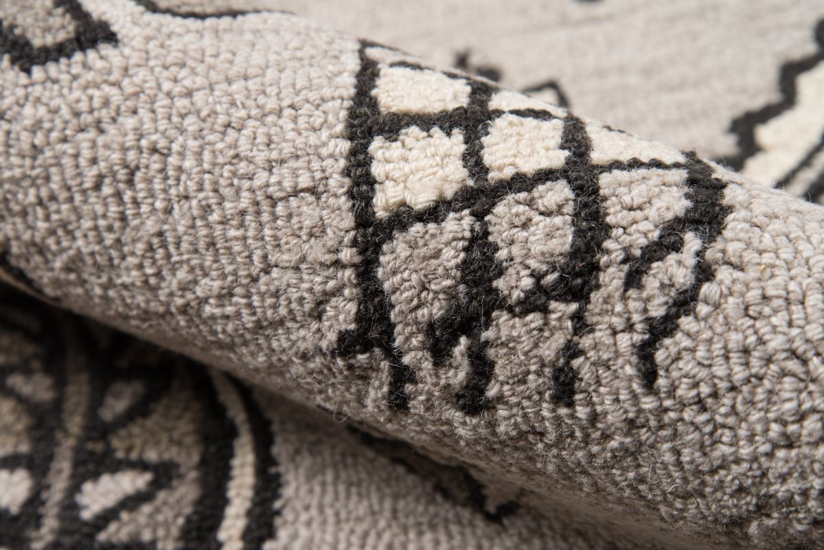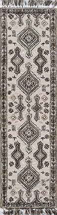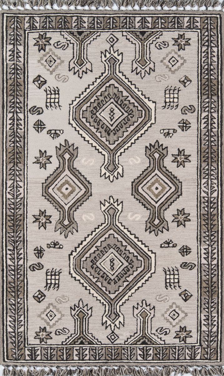 Southwestern motifs get a modern edge in the graphic design elements of this decorative area rug. Available in a stunning array of tribal patterns, each floorcovering features a geometric repeat inspired by iconic tribal prints. Diamonds, crosses, medallions and stars form repeating stripes and intricate linework while tassels at the top and bottom of the rug accentuate the exotic vibe of the with a fun, fringed border. Exceptional in style and composition, each rug is hand hooked from natural wool threads.
