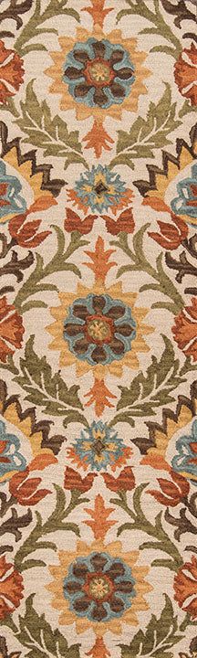The graphic global designs of this traditional area rug are reminiscent of roads less travelled. Intricate Kazak rug motifs, including geometric patterns and repeating floral fields, are depicted in desert-inspired shades of warm red, gold, burnt sienna and sky blue. Natural 100% wool fibers and hand-tufted construction reflect the rugged sensibilities of each rug’s nomadic design, while a washed finish gives the rustic rug a refined hand.