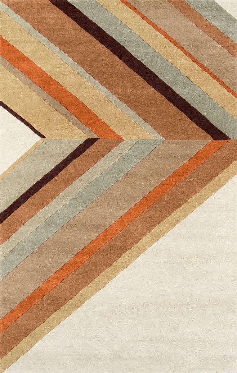 The graphic design of this modern area rug adds contemporary flair to floors throughout the home. Captured in a spectrum of vivid shades, polka dots, chevron stripes, triangulated patterns and checkerboard prints are perfect for layering above carpet or hard surfaces. Hand tufted from natural wool fibers, this decorative area rug assortment emanates fun with its oversized geometric arrangements and vibrant splashes of color.