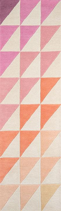 The graphic design of this modern area rug adds contemporary flair to floors throughout the home. Captured in a spectrum of vivid shades, polka dots, chevron stripes, triangulated patterns and checkerboard prints are perfect for layering above carpet or hard surfaces. Hand tufted from natural wool fibers, this decorative area rug assortment emanates fun with its oversized geometric arrangements and vibrant splashes of color.