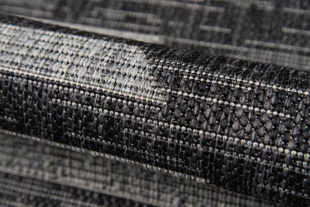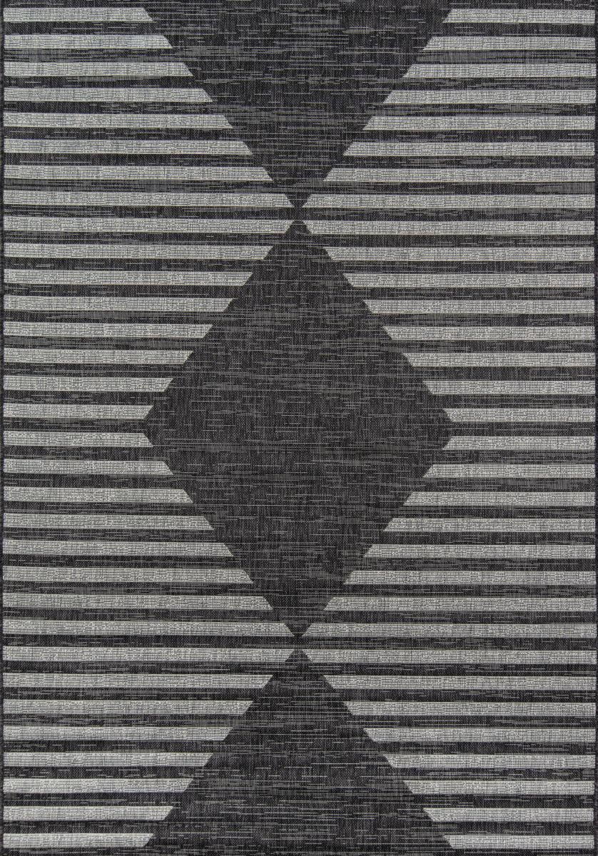 An indoor/outdoor rug assortment that exudes contemporary cool, this modern area rug collection features repetitive patterns inspired by international architectural motifs. The all-weather rug series emphasizes graphic geometric prints, using high contrast charcoal grey, chambray blue, fuchsia pink and russet red shades to draw attention toward the floor. Manufactured from durable polypropylene fibers, the decorative floorcovering series is a staple for statement-making interior and exterior spaces.