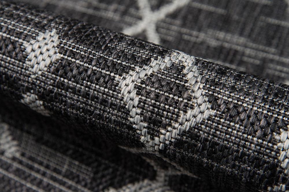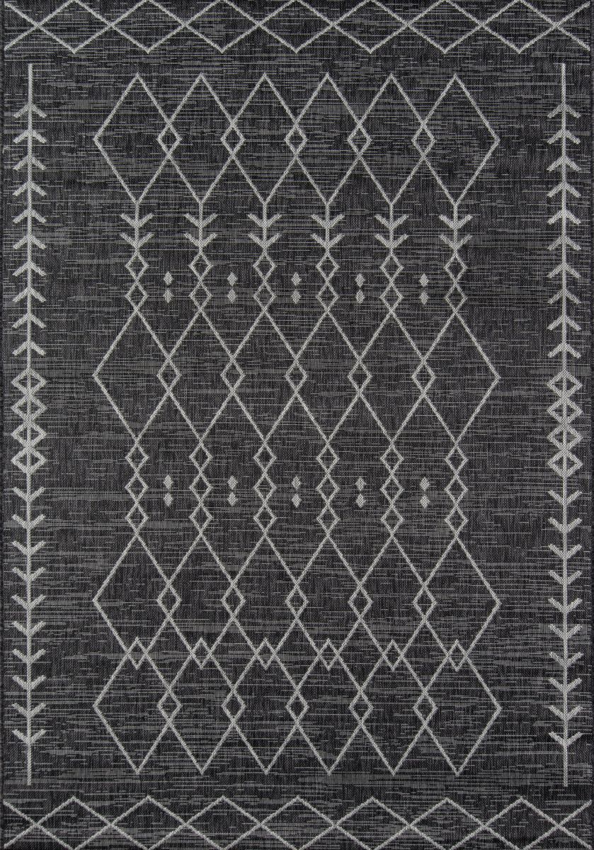 An indoor/outdoor rug assortment that exudes contemporary cool, this modern area rug collection features repetitive patterns inspired by international architectural motifs. The all-weather rug series emphasizes graphic geometric prints, using high contrast charcoal grey, chambray blue, fuchsia pink and russet red shades to draw attention toward the floor. Manufactured from durable polypropylene fibers, the decorative floorcovering series is a staple for statement-making interior and exterior spaces.