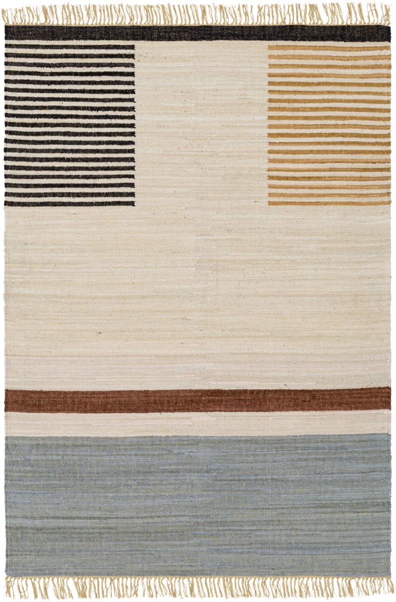 This Fulham area rug is a perfect blend of modern style and timeless craftsmanship. The hand woven construction from cotton adds a unique texture and design to any room in your home. The no pile design ensures that this rug will withstand years of use, while the fringe gives it an extra touch of elegance. Place this area rug on any hard surface for added warmth and comfort. This beautiful piece is made in India and measures 8'x10'. We recommend using a rug pad for added protection, stability, and durability.