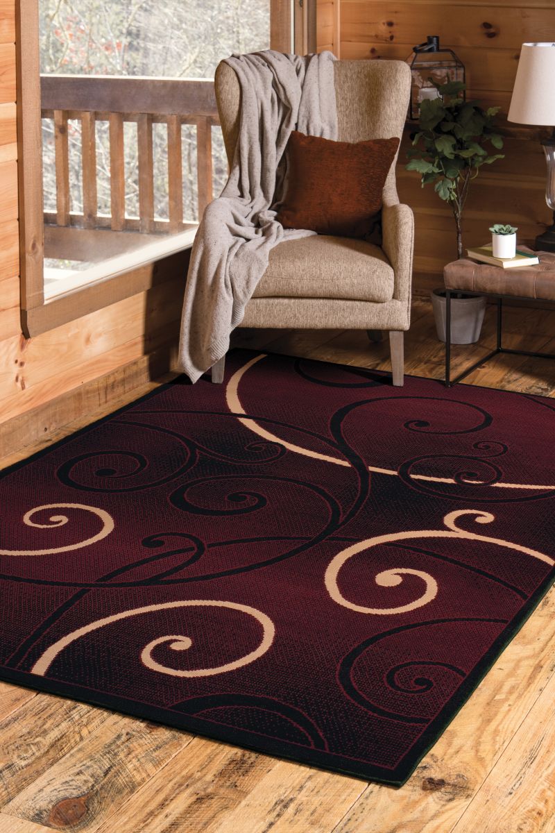 This regally designed rug will create an artistic flare in your room décor. The faded burgundy red background and beige tones will alleviate your interior design. Exquisite polypropylene machine-made rug with jute backing for long-lasting color and durability.