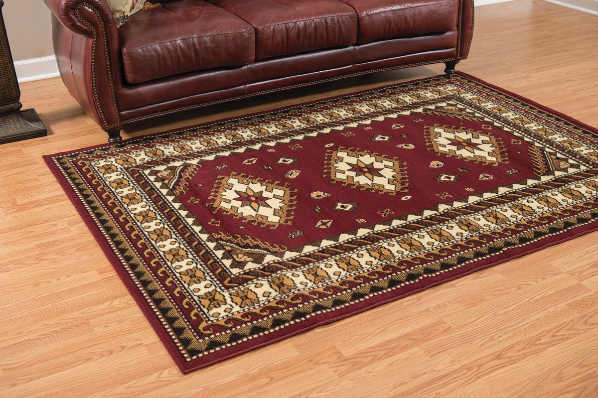 Add a southwestern feel to your room with this beautiful rug. A précised edging gives this polished rug a sense of elegance while not being overwhelming. The background hue of burgundy red adds an eye-catching trait. Exquisite polypropylene machine-made rug with jute backing for long-lasting color and durability.